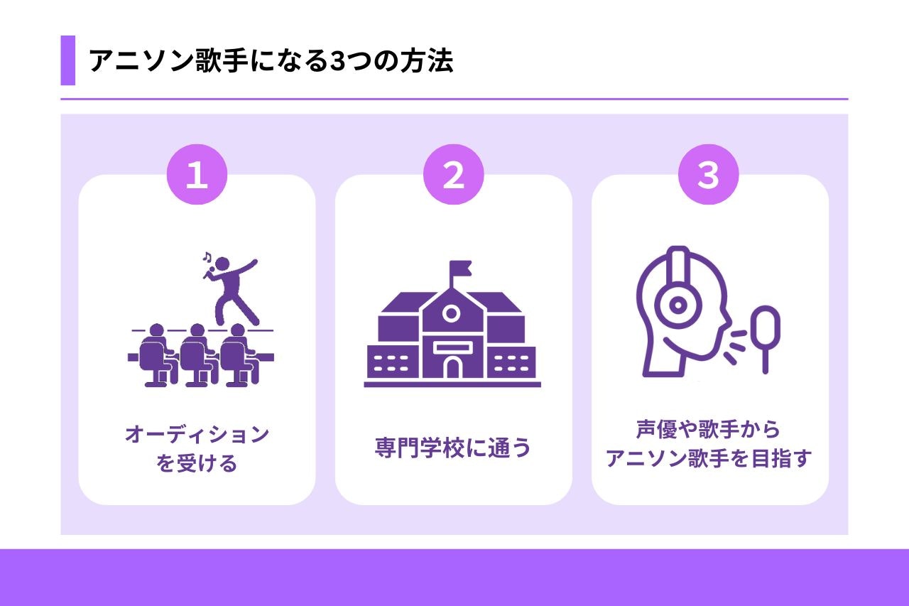 最近は、声優の活動の幅が広がっており、歌手活動をおこなう声優が増えてきているため、こういった形でアニソン歌手を目指すことも考えてみてください。