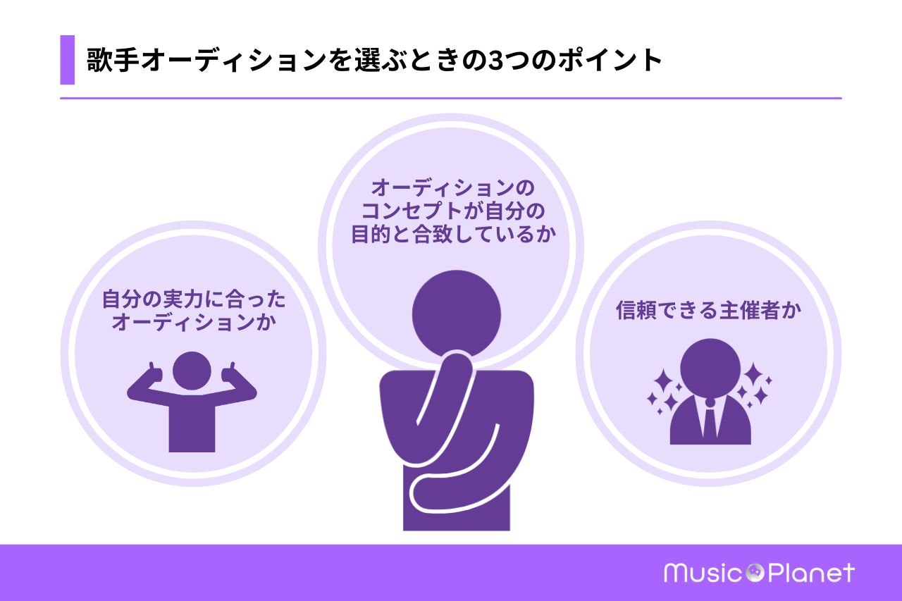 応募する歌手オーディションを選ぶときのポイントは次の3つです。