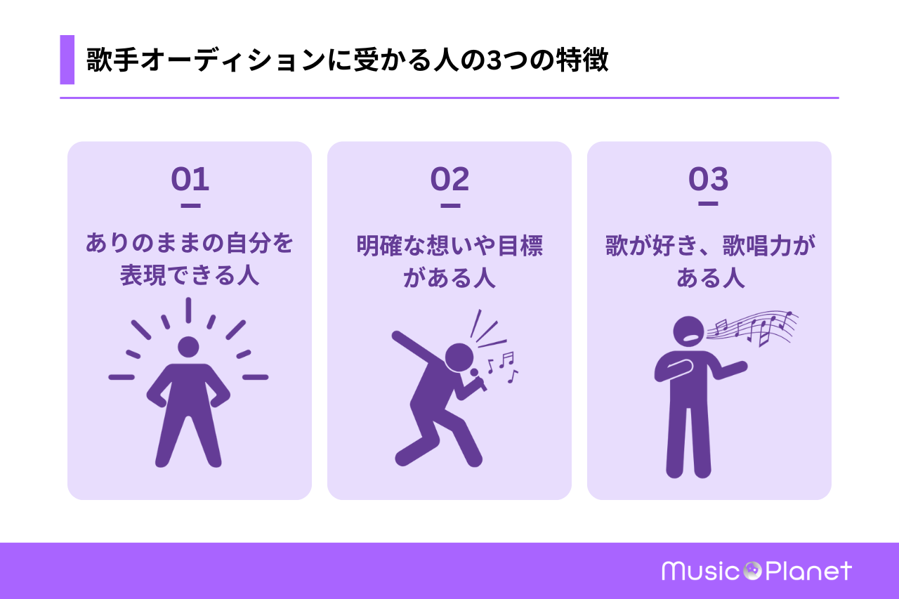歌手オーディションに受かる人には、以下の3つの特徴があります。