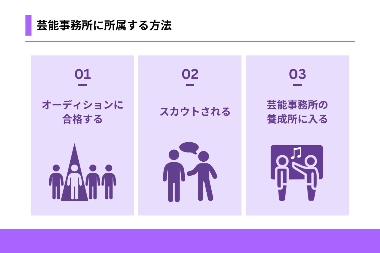 芸能事務所に所属するには、主に以下の3つの方法があります。