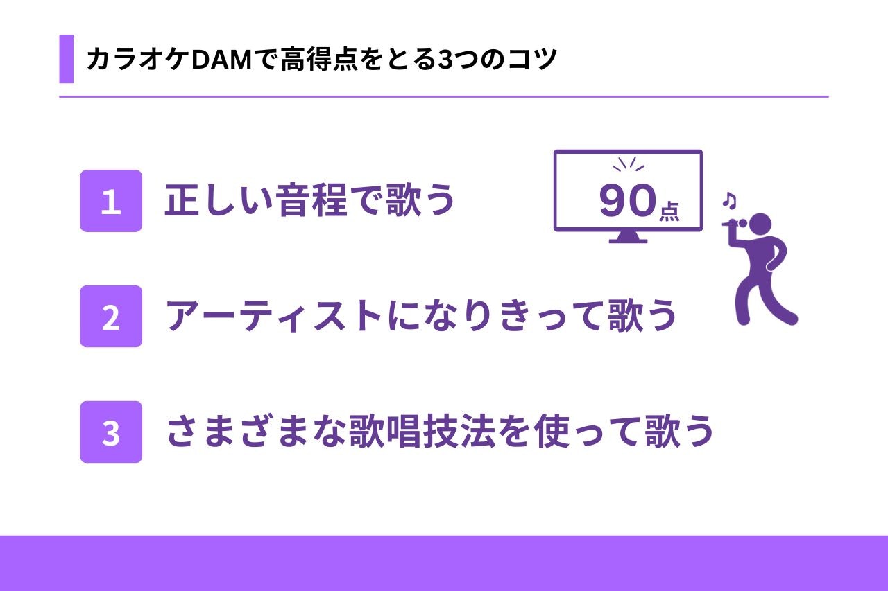 カラオケDAMで高得点をとるには、3つのコツがあります。