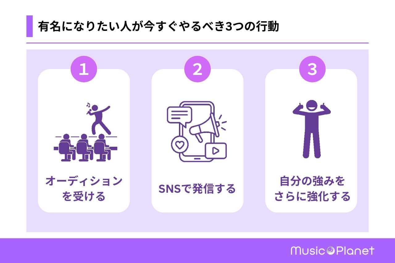 有名になるためには行動力が大切です。今すぐできることを行動に移すのが、成功への近道となるでしょう。