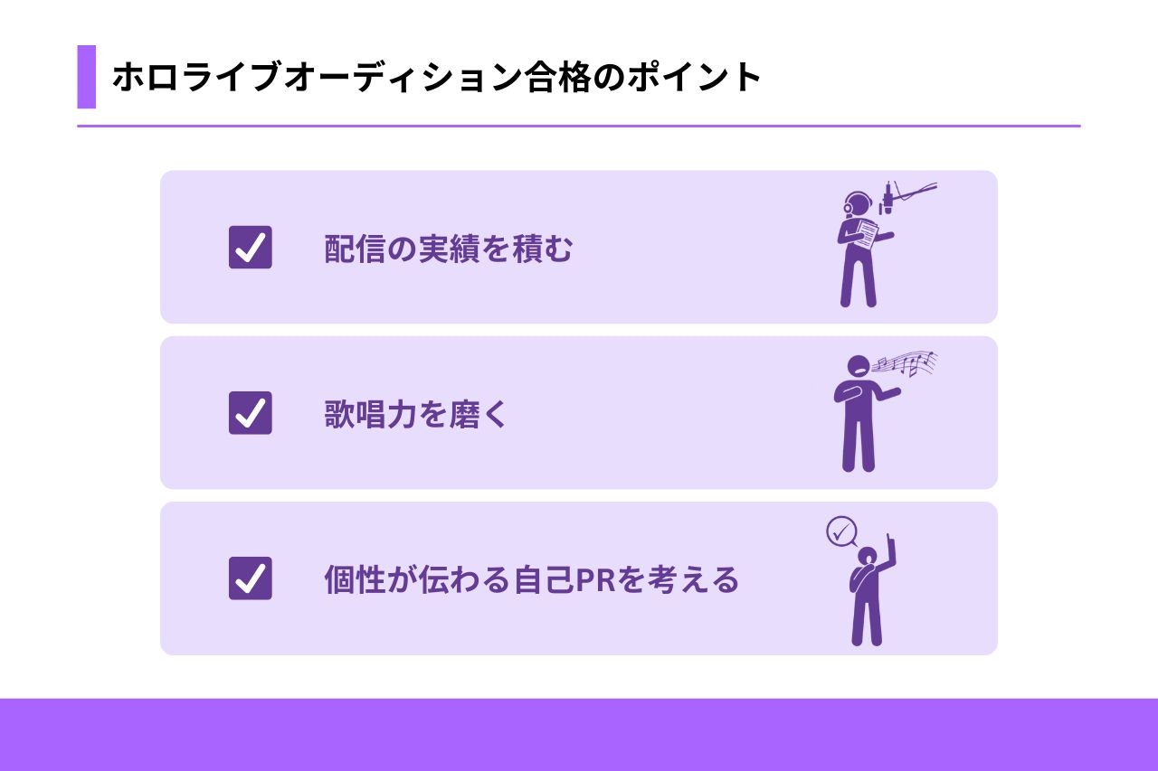 ホロライブオーディションで合格を勝ちとるための3つのポイントを紹介します。