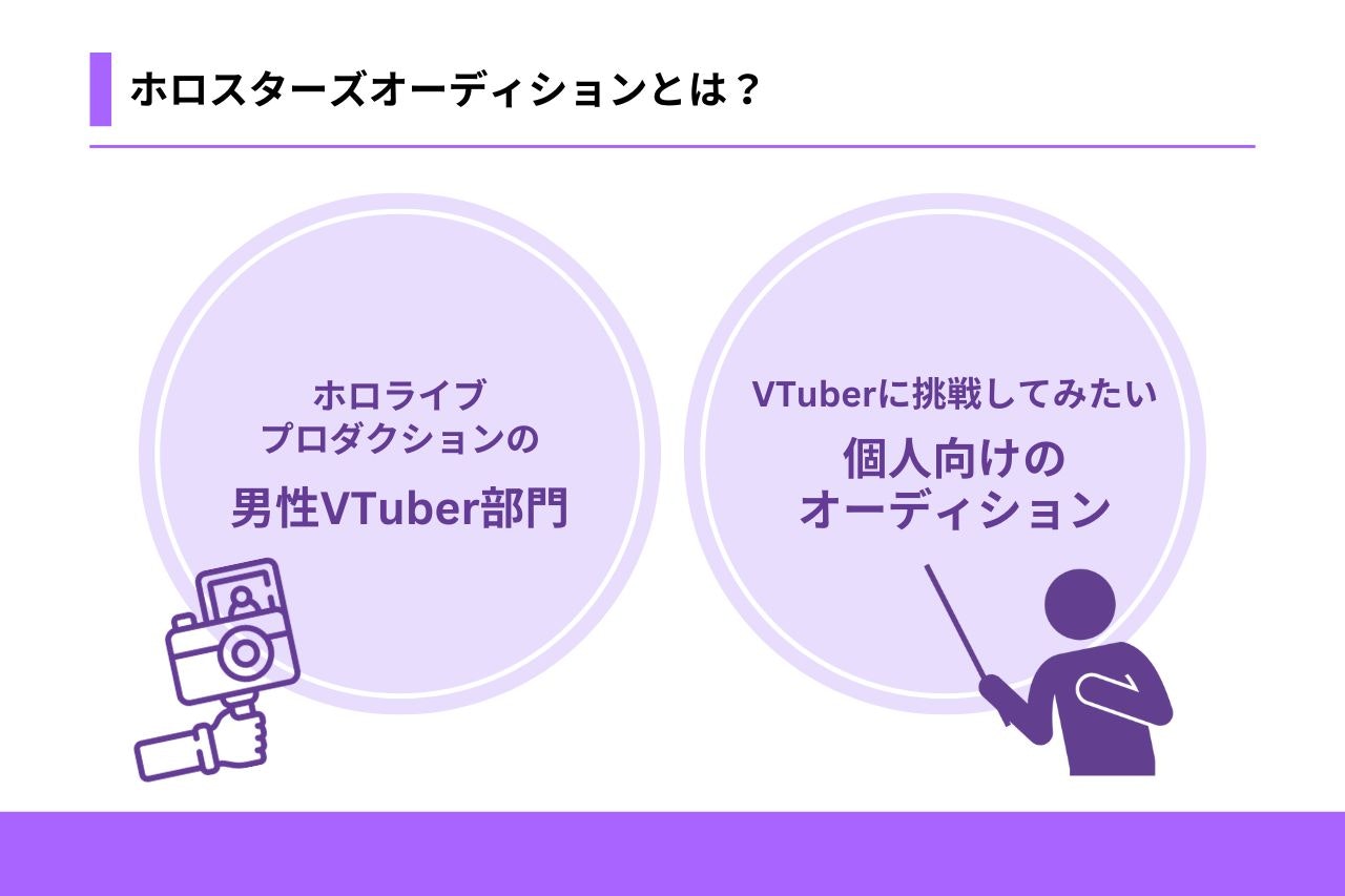 ホロスターズオーディションは、男性VTuberグループ「ホロスターズ」に所属するVTuberを探すオーディションです。専用キャラクターの提供や配信用機材の貸し出しもあり、VTuber活動を手厚くサポートします。