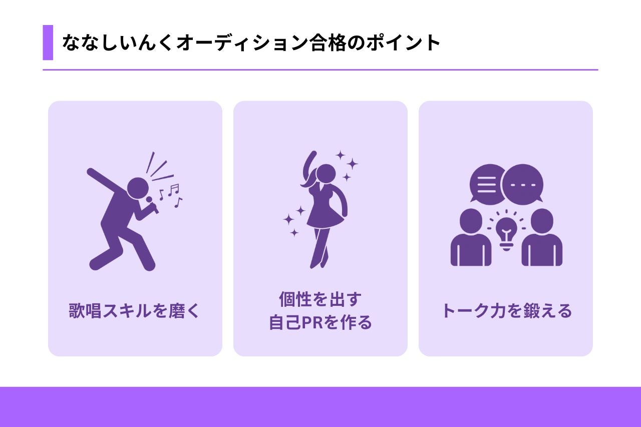 ななしいんくのオーディションに合格するためには、次の3つのポイントを押さえておくことが大切です。