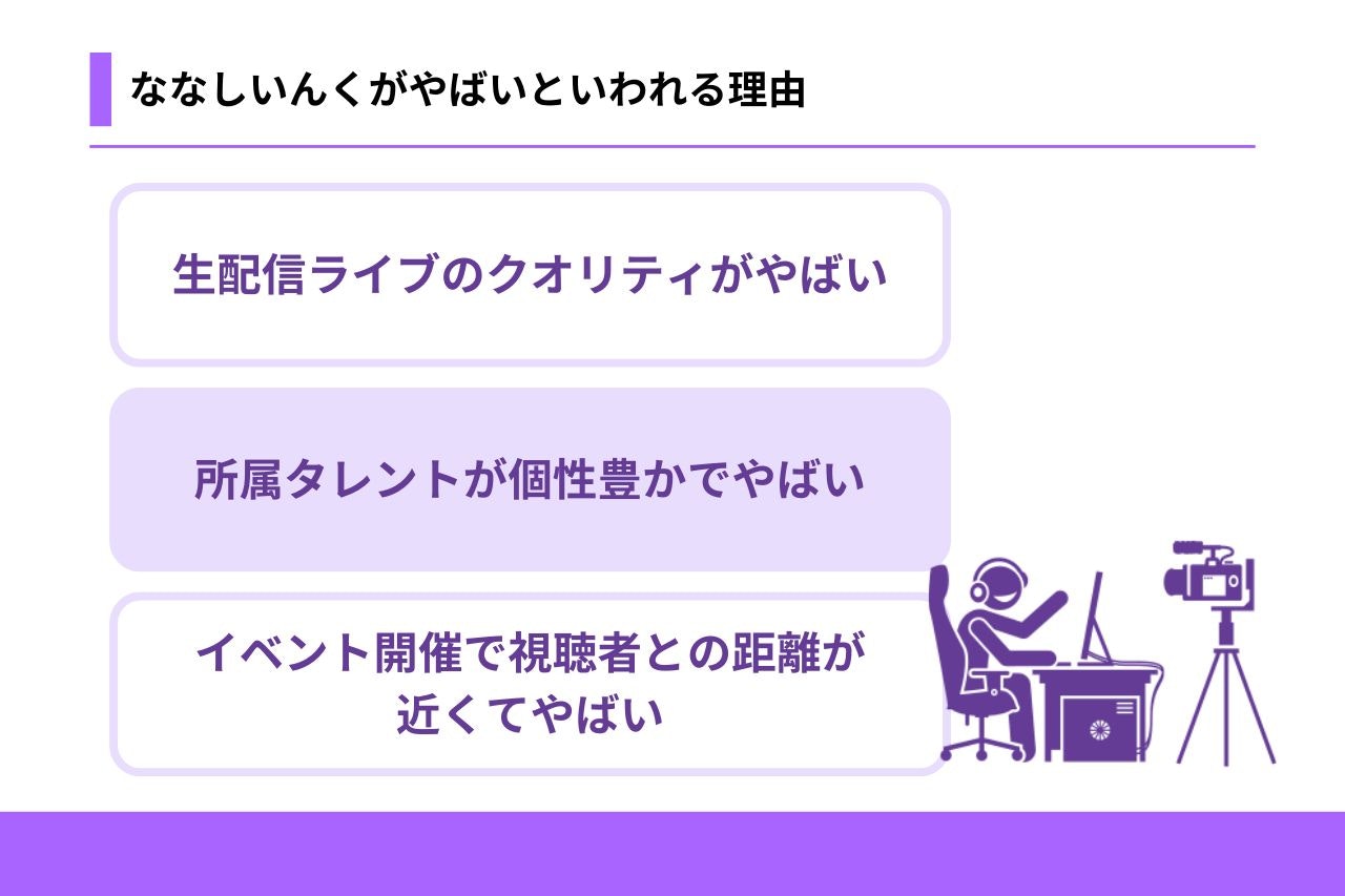 ななしいんくが「やばい」と評判になっている理由は、次の3つです。