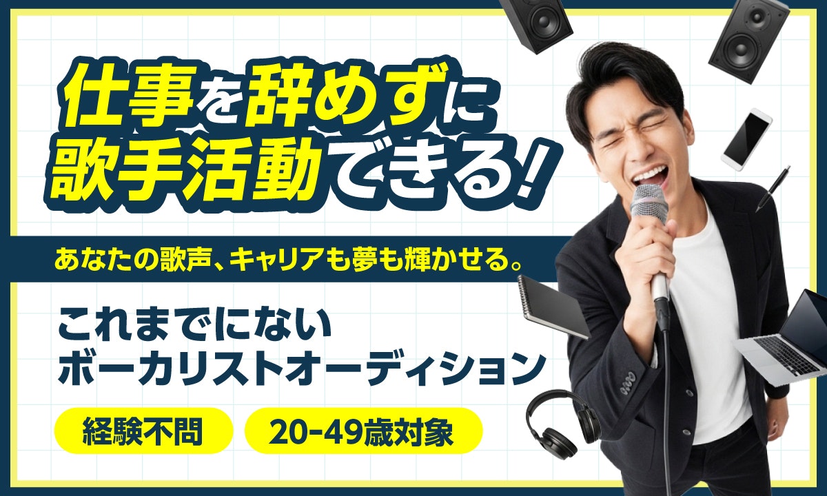 オーディションは、学生を除く20~49歳が対象で、応募資格は歌をほめられた経験のみ。書類選考はありません。オーディション参加費も無料ですので、どなたでも気軽に応募可能です。自分の歌声に自信がある方、バンドのボーカリストを目指している方は、ぜひチェックしてみてくださいね。