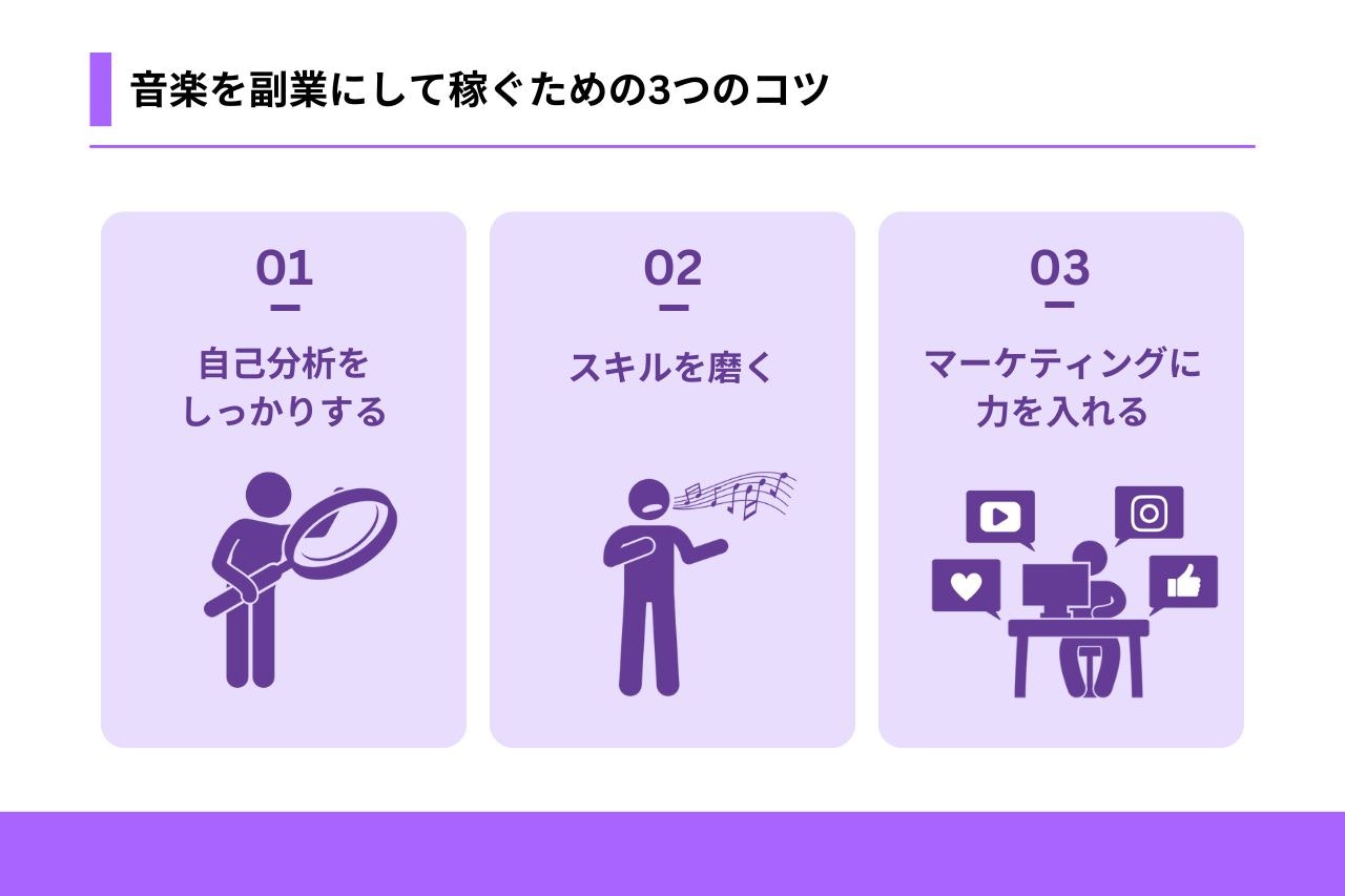 音楽を副業にして効率よく稼ぐためには、次のようなコツがあります。