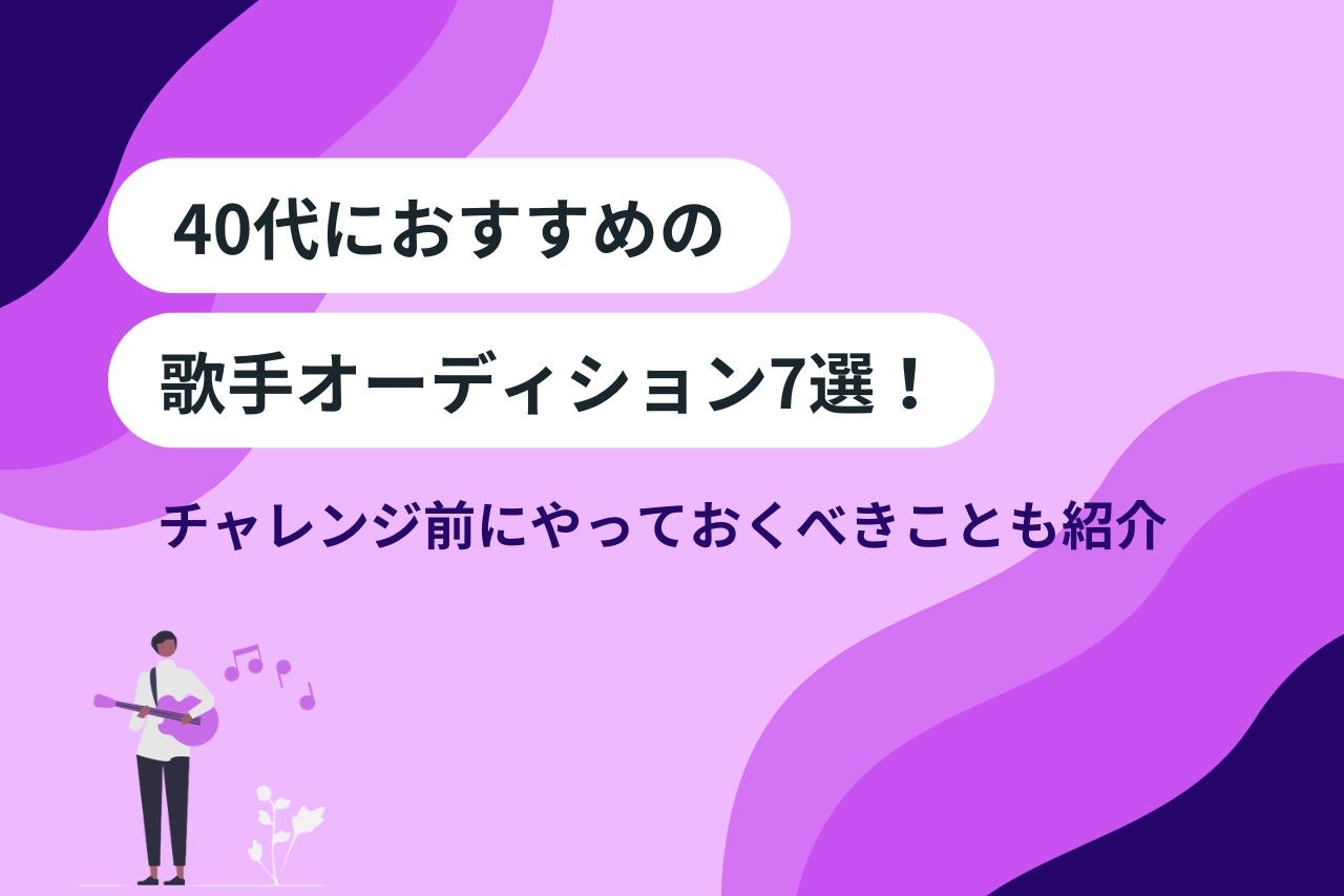 なお、30代・40代におすすめしたいオーディションについては、関連記事「30代でオーディションは遅い?合格のポイントとおすすめオーディションを紹介」「40代におすすめの歌手オーディション7選!チャレンジ前にやっておくべきことも紹介」で詳しく解説していますので、あわせて参考にしてみてください。