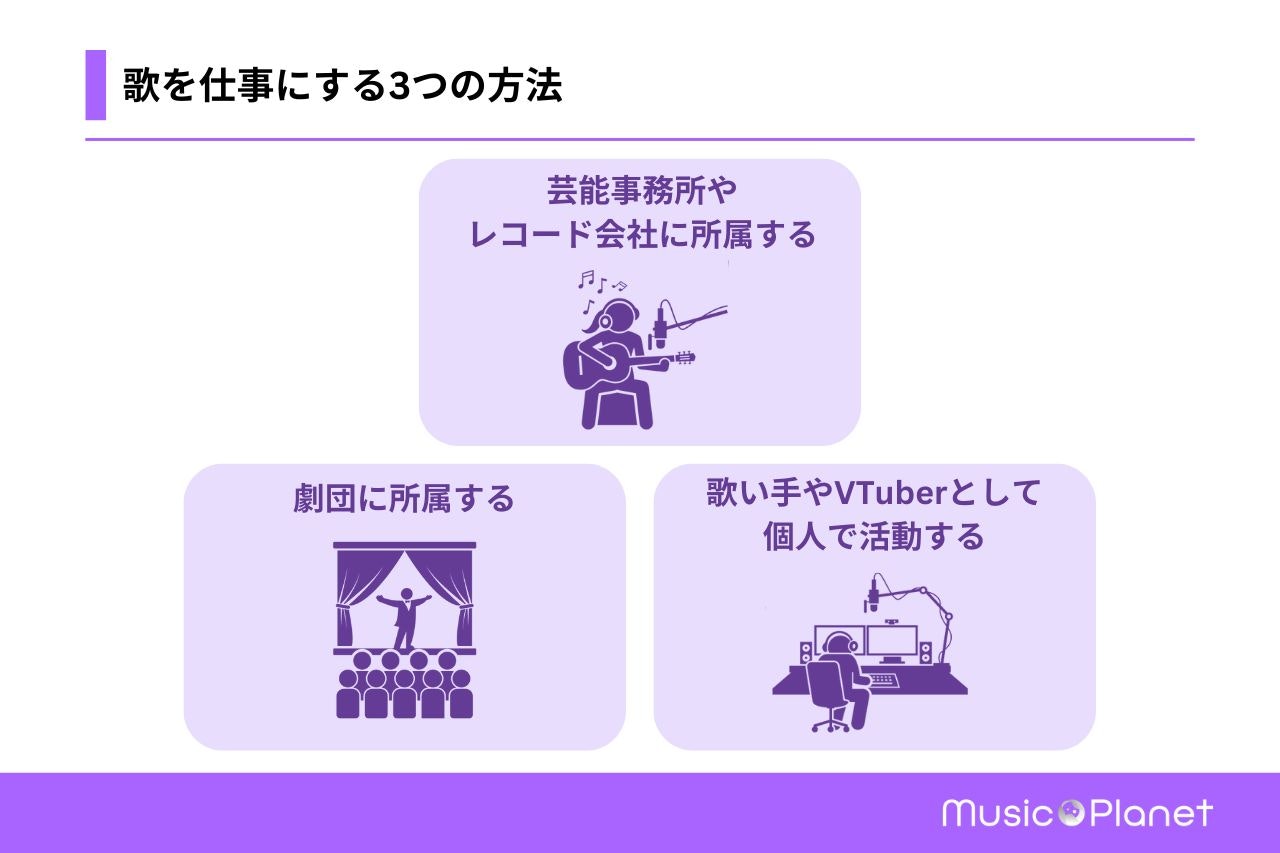 歌を仕事にするには、大きく以下の3つの方法があります。