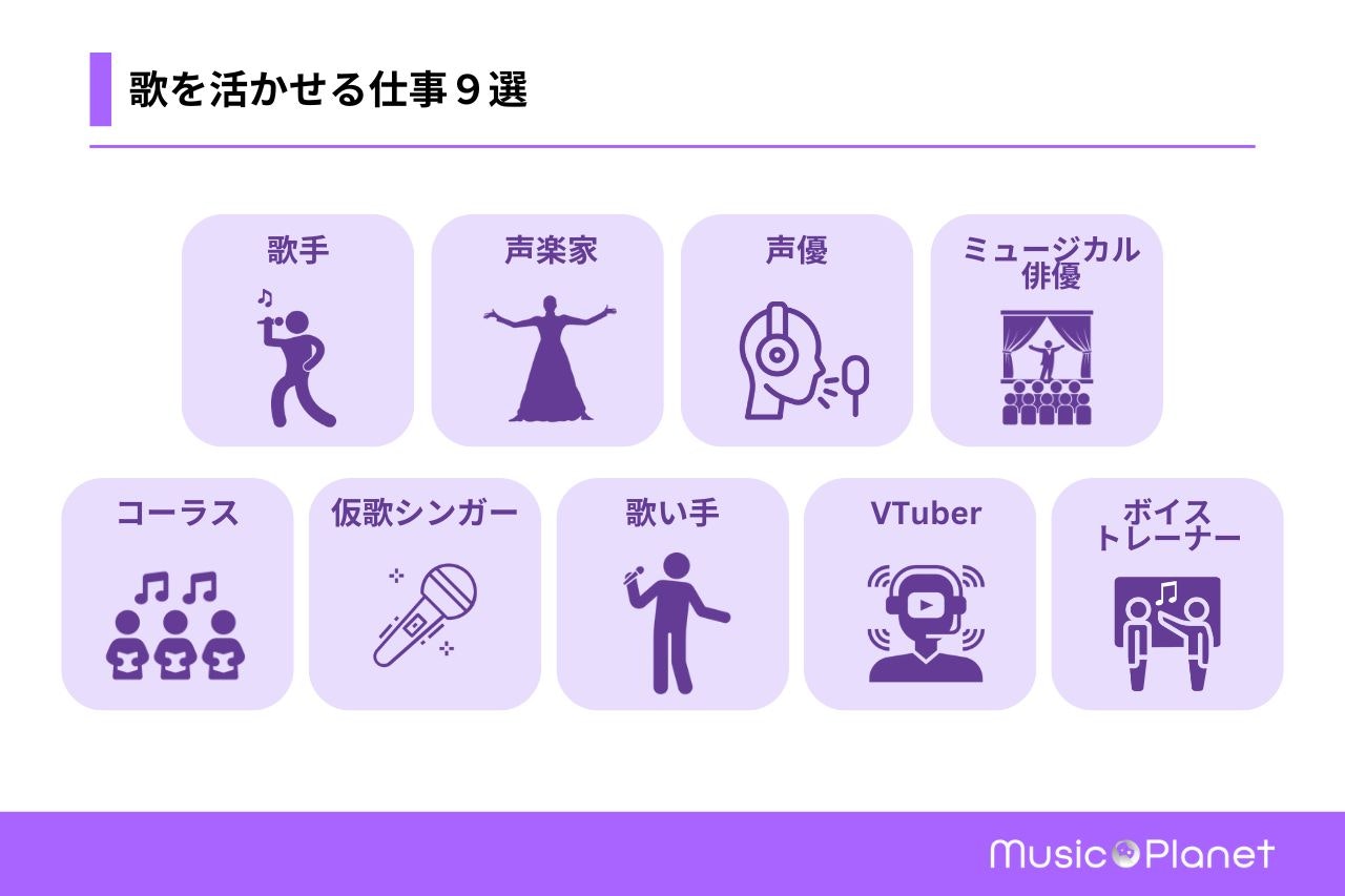 この章では、歌を活かせる仕事である上記9つを詳しく紹介します。