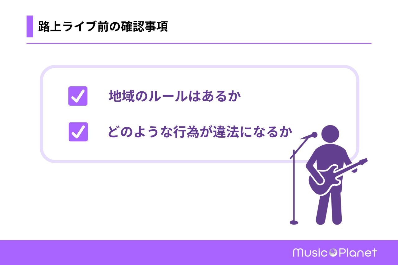 路上ライブをする前には、チェックすべき確認事項があります。具体的には次の2つです。
