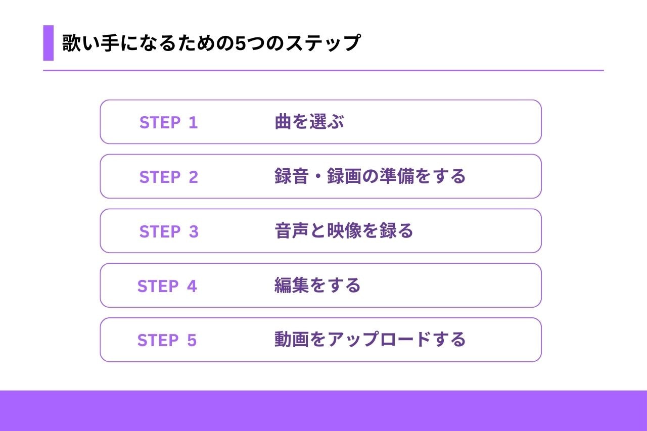 歌い手になるためには、次の5つのステップを踏むことが重要です。