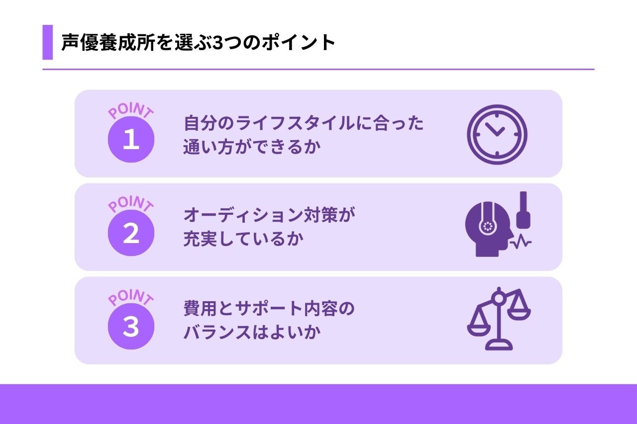 3.失敗しない!声優養成所を選ぶ3つのポイント