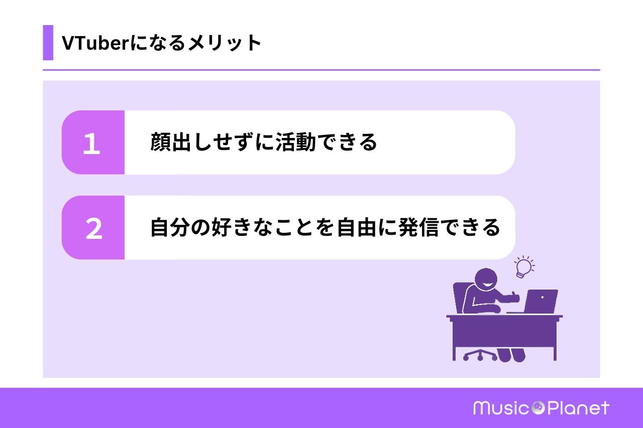 VTuberになるにはさまざまな準備が必要ですが、匿名性が高く、好きなことを発信できる自由度の高さが魅力です。それぞれ詳しく解説します。