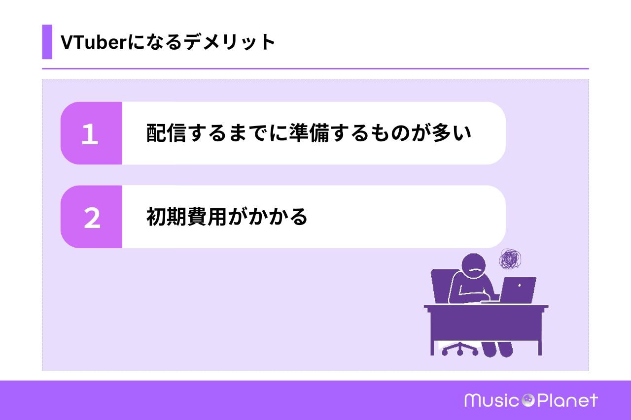 いざ始めようと思っても、準備や費用がかかり、なかなかすぐには配信するのが難しいVTuber。デメリットを理解したうえで段取りをしていけば、安心してスタートできるはずです。