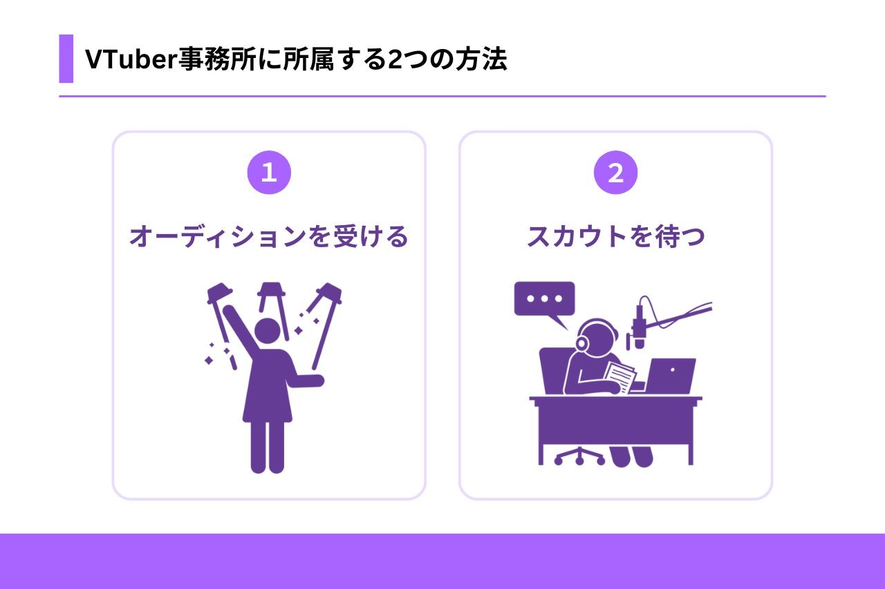 VTuber事務所に所属する方法は、大きく分けて2つあります。
