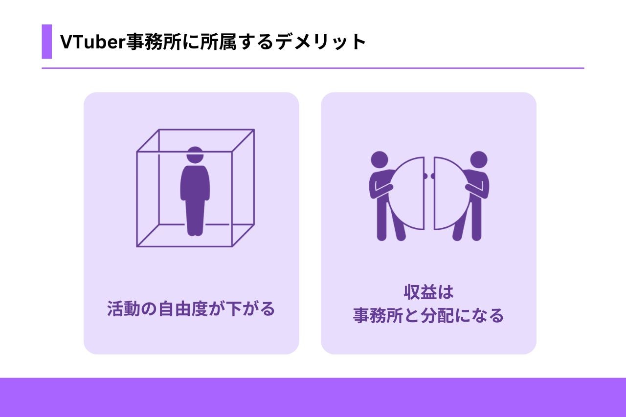 VTuber事務所には多くのメリットがありますが、注意したいデメリットもあります。ここでは、次のデメリットについて解説します。
