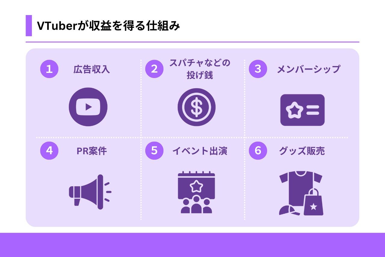 VTuberが収益を得る仕組みは、主に以下のとおりです。