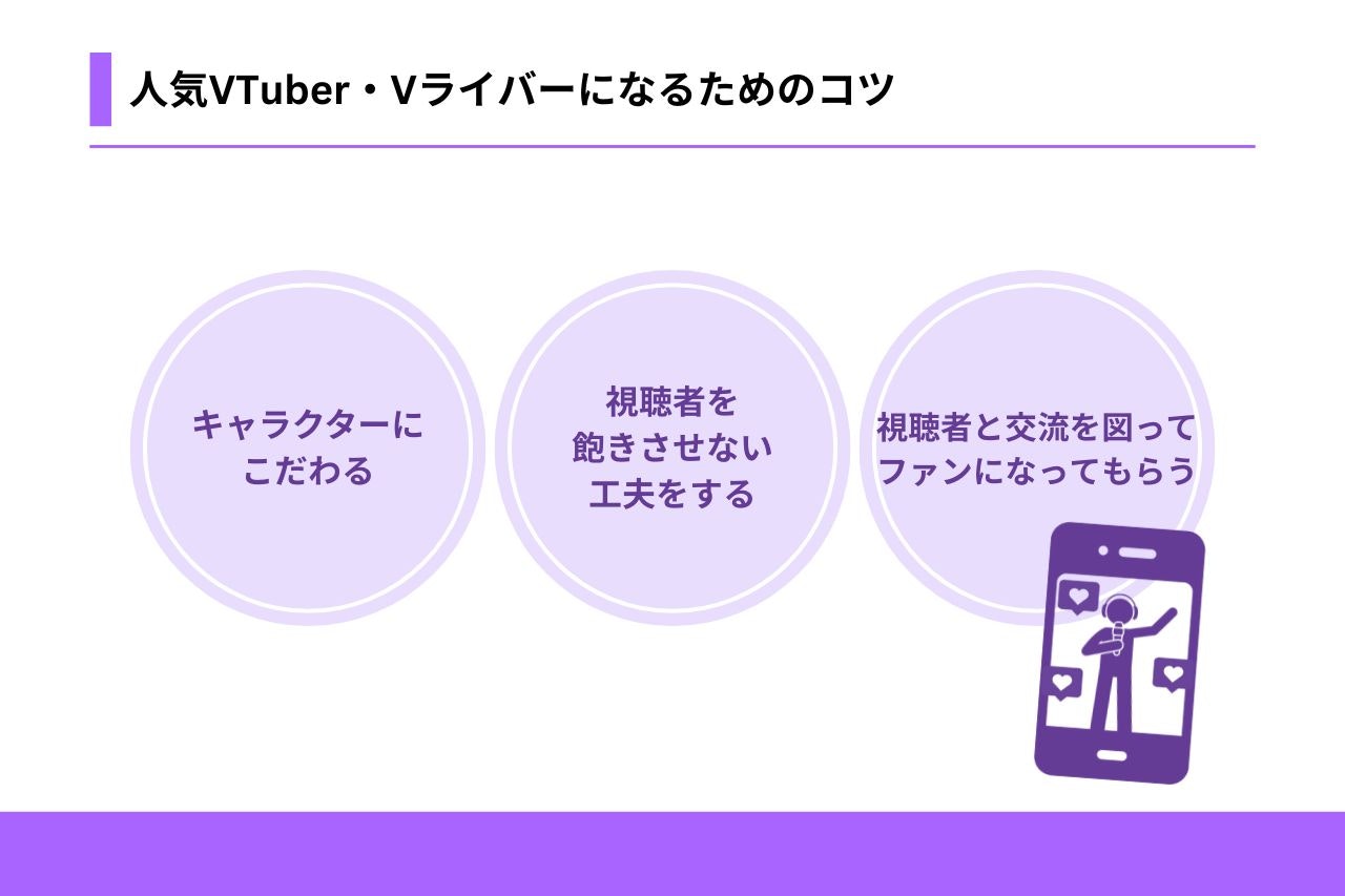 人気VTuberやVライバーになるためには、いくつかのコツがあります。具体的には以下の3つです。