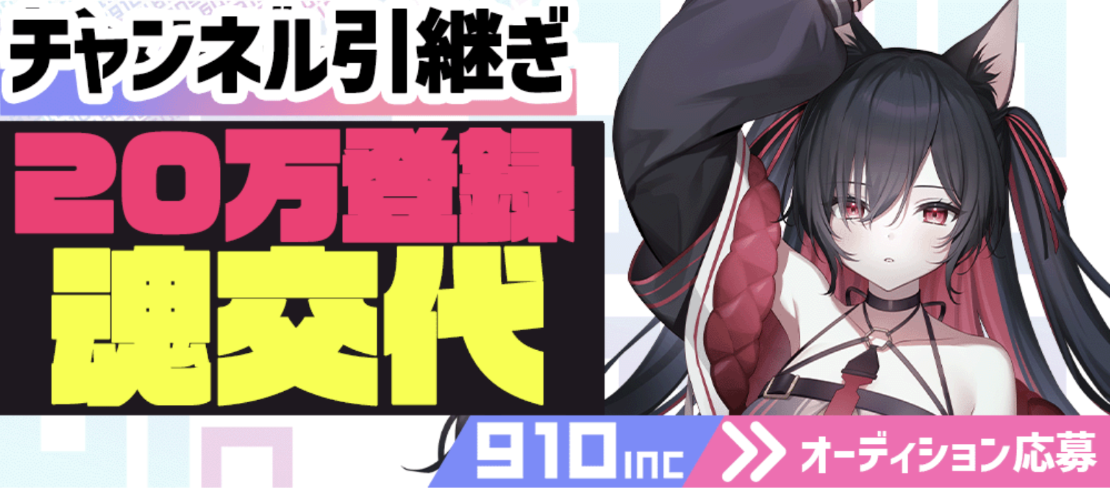 出典:【新人VTuberオーディション】910inc”魂交代”オーディション開催中【すでに採用&デビュー準備中メンバーも】 | ライバー事務所910inc