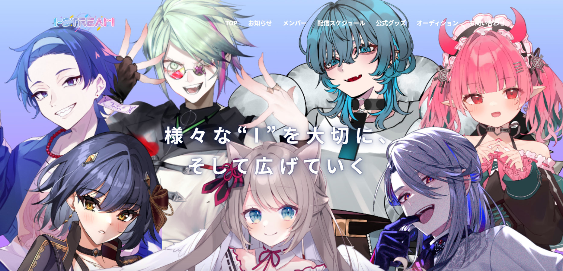 I-STREAMはバラエティー豊かなメンバーが所属するVTuberグループです。様々な“I”を広げていくことを目的としています。