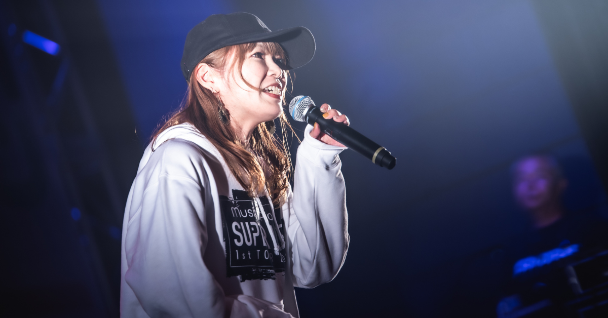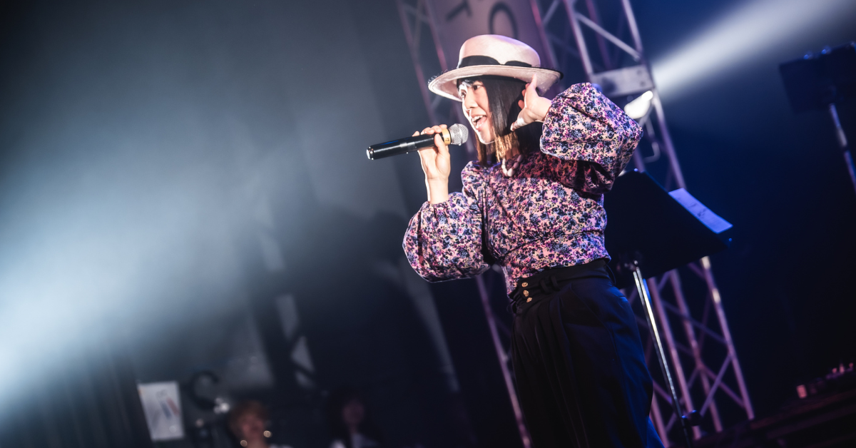 今回のライブでは歌唱だけでなく、福田幹大プロデューサーが事前に募集した歌詞を選出し楽曲として披露するコーナー「歌詞募集企画」も実施。約140件の応募の中から見事に選ばれたRukbat氏の歌詞を、テクノ風のダンスミュージックの楽曲として披露しました。