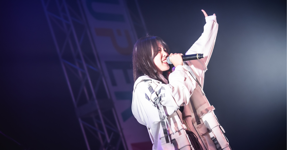 オープニングアクトとしてまずステージに登場したのは、Lynne∞氏。「最後まで盛り上がっていきましょう!」と観客を煽りながら、会場を温めていきます。バックサウンドのギターがかっこよくサビが特徴的な楽曲を、力強く歌いあげました。続いて登場したのはカイナ氏。疾走感のあるバンド調の楽曲を歌い上げ、観客もさまざまな色のペンライトを振って盛り上がっていきました。